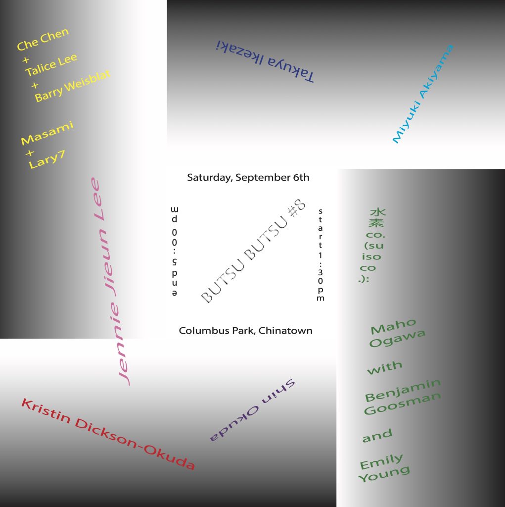 Now in its 8th edition, Butsu Butsu brings together artists from diverse creative disciplines for a shared, improvisational experience. Collaborating artists for this edition include choreographer/performers Suiso co.: Maho Ogawa with Benjamin Goosman and Emily Young; ceramicist Jennie Jieun Lee; designers Kristin Dickson-Okuda and Shin Okuda; artists Takuya Ikezaki and Miyuki Akiyama; and musicians Barry Weisblat,